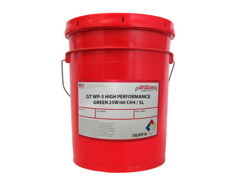 WILLIAMS GT WP-5 HIGH PERFORMANCE GREEN 25W/60 esta formulado con aditivos de adhesividad que le permiten una mayor protección en las partes metálicas al momento del arranque.