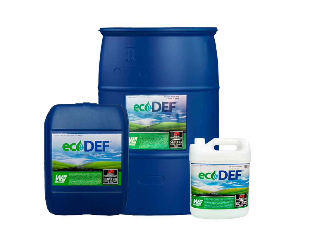 Es una solución de urea para uso automotriz al 32%, este producto es utilizado en el post tratamiento de gases de los motores diesel de última generación la cual apunta a reducir la emisión de monóxidos de nitrógeno. Williams Eco Def actúa como un agente reductor para sistemas SCR (reducción catalítica selectiva) la cual reduce los componentes de NOx delos gases de escape,transformándolos en dióxido de nitrógeno, carbono y agua. Los fabricantes de vehículos son muy conscientes de la importancia de utilizar un producto de alta calidad.